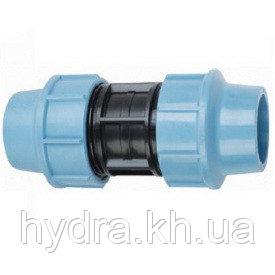 Предназначена для з'єднання ПНД труб в довгі прямі відрізки трубопровідних магистралей. Використовуються при стикуванню труб різних діаметрів, тому на кінцях перехідній муфты діаметри вхідних отверстий розрізняються. Принцип монтажа простий: трубу необхідно вставить в притискну пластикову втулку, попередньо надев на неї притискну гайку и гайку кришку. Фіксуючи жорстко трубу в корпусе відведення, необхідно затиснути гайку кришку, повернув ее до упору по годинний стрелке. В з'єднанні з допомогою такий муфты найменша втрата тиску. Пропускна здатність трубопроводу не змінюється.